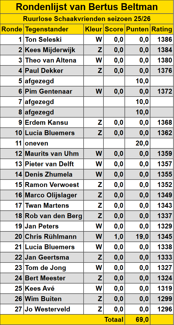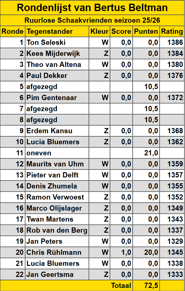 Bertus Beltman Hieronder een overzicht van de gespeelde wedstrijden van Bertus Beltman.