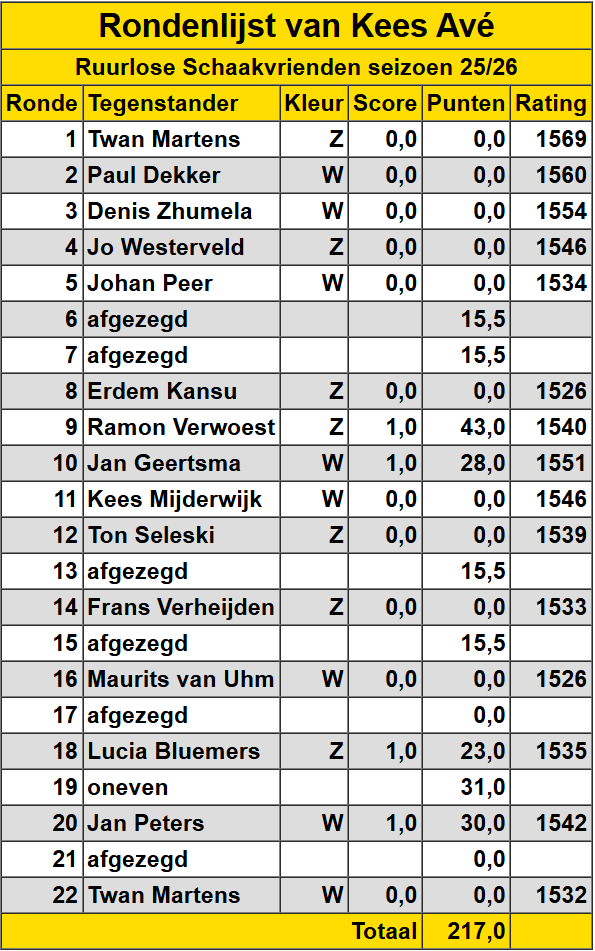 Kees Avé Hieronder een overzicht van de gespeelde wedstrijden van Kees Avé.