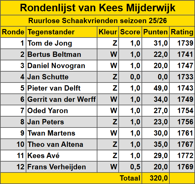 Kees Mijderwijk Hieronder een overzicht van de gespeelde wedstrijden van Kees Mijderwijk.