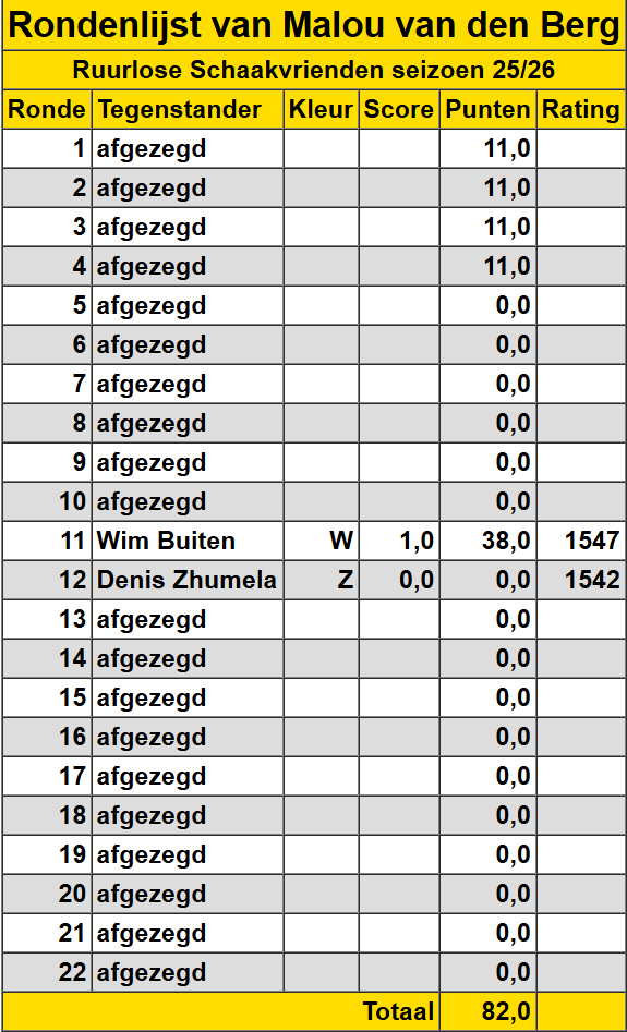 Malou van den Berg Hieronder een overzicht van de gespeelde wedstrijden van Malou van den Berg.