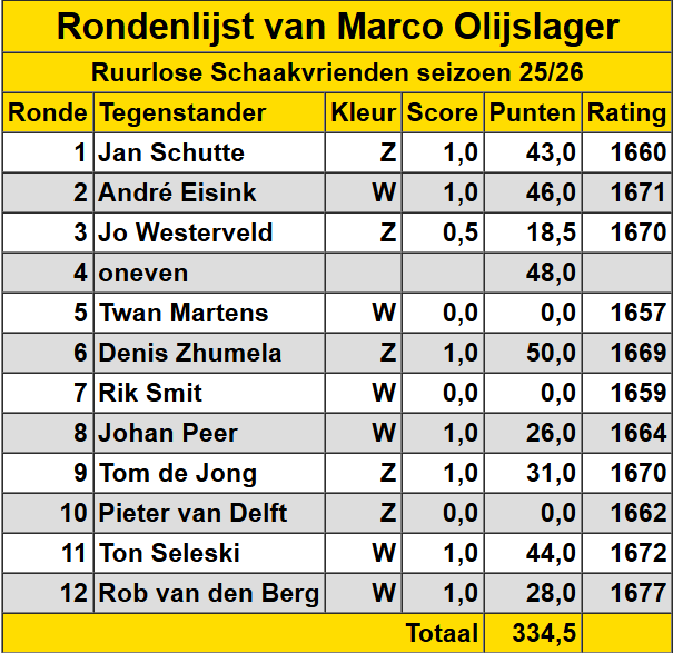Marco Olijslager Hieronder een overzicht van de gespeelde wedstrijden van Marco Olijslager.