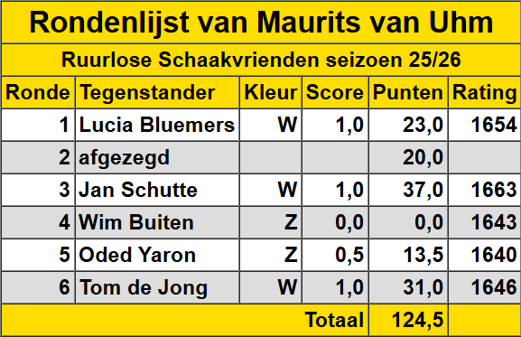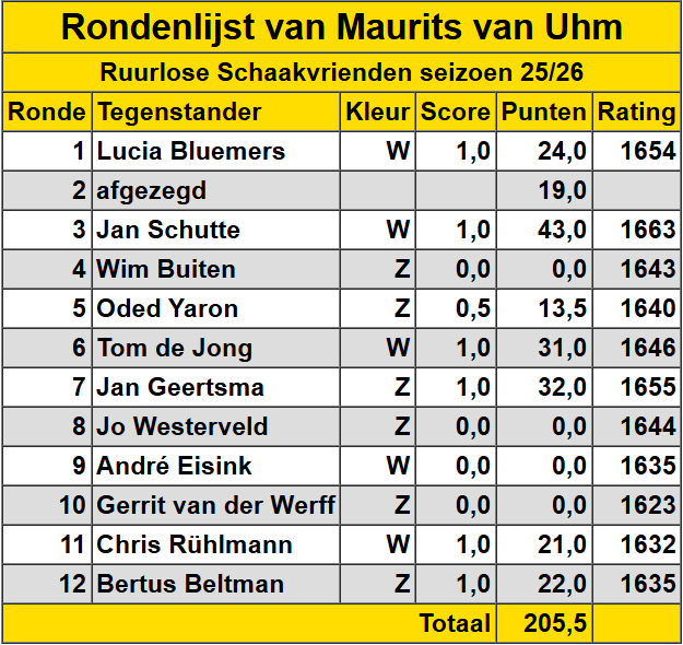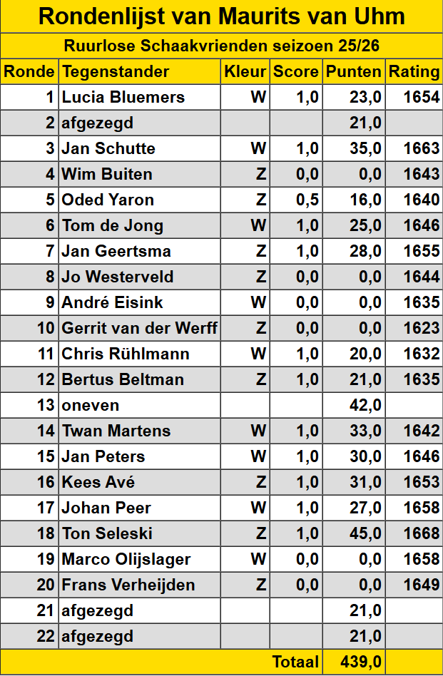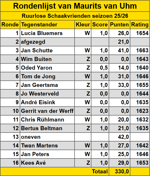 Maurits van Uhm Hieronder een overzicht van de gespeelde wedstrijden van Maurits van Uhm.