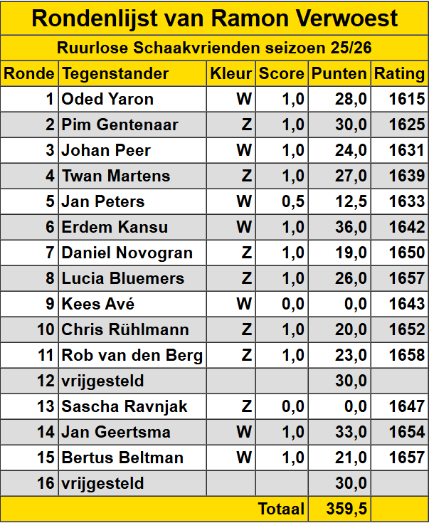 Ramon Verwoest Hieronder een overzicht van de gespeelde wedstrijden van Ramon Verwoest.