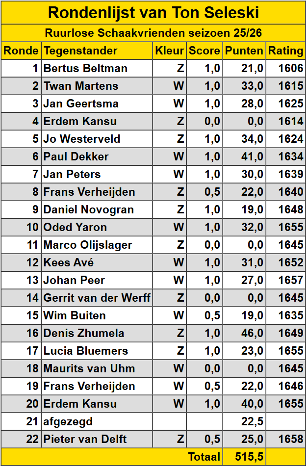 Ton Seleski Hieronder een overzicht van de gespeelde wedstrijden van Ton Seleski.