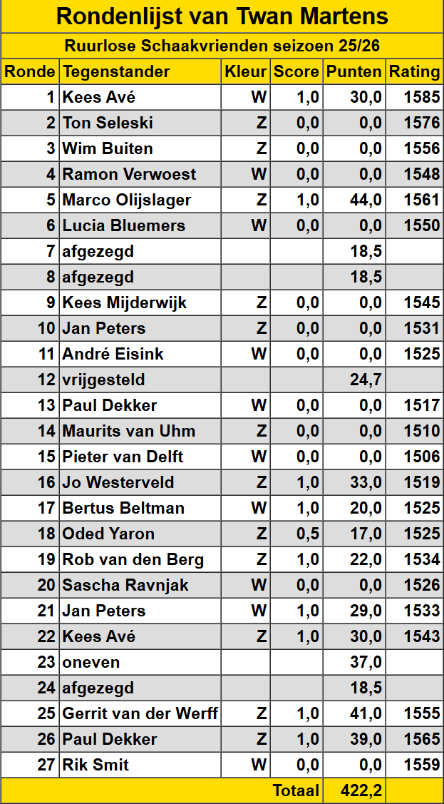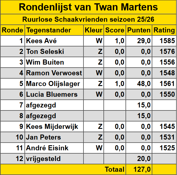 Twan Martens Hieronder een overzicht van de gespeelde wedstrijden van Twan Martens.