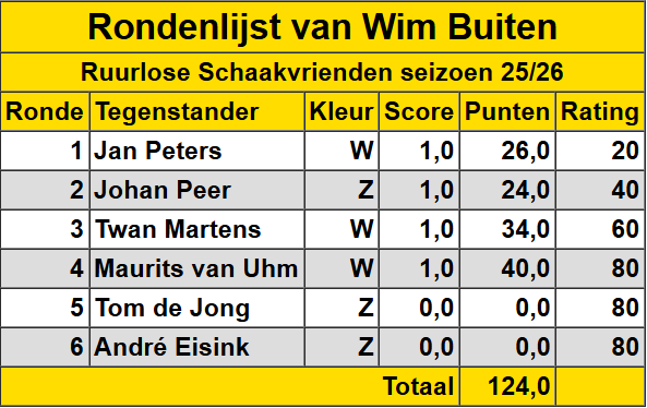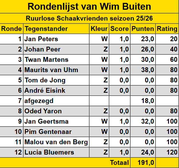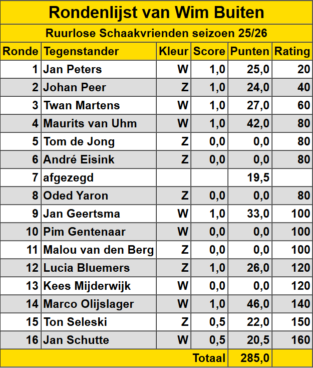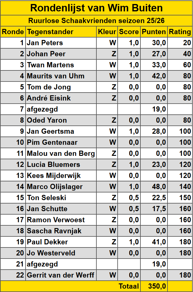 Wim Buiten Hieronder een overzicht van de gespeelde wedstrijden van Wim Buiten.