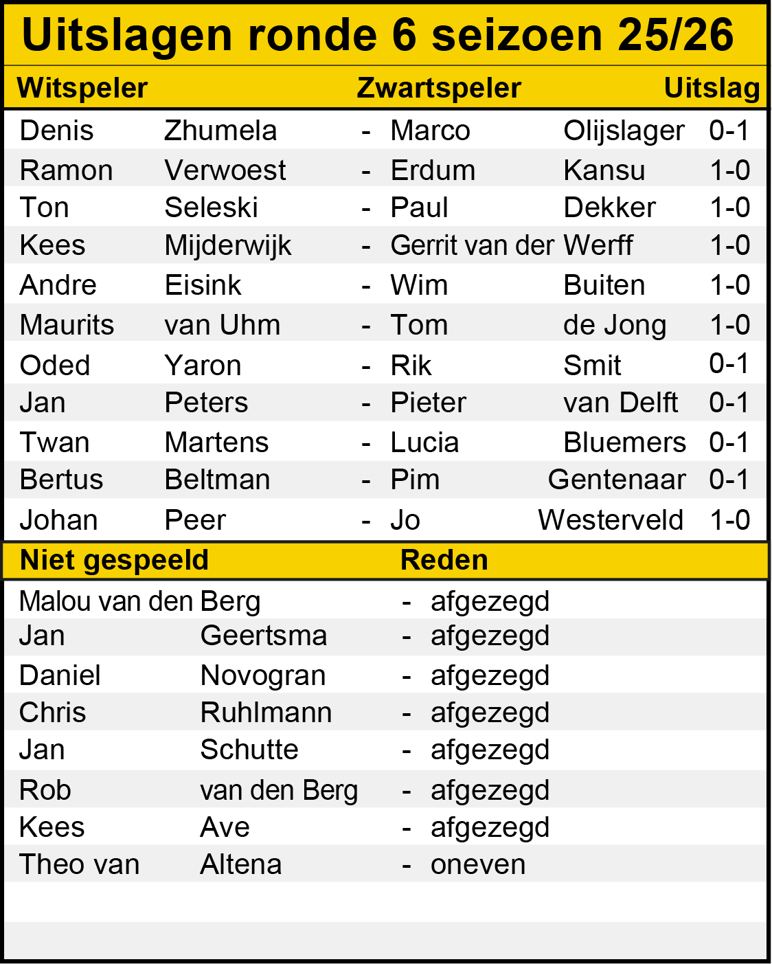 Hieronder de stand in de interne competitie van de Ruurlose schaakvrienden.