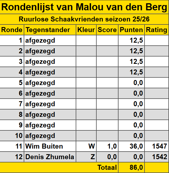 Malou van den Berg Hieronder een overzicht van de gespeelde wedstrijden van Malou van den Berg.
