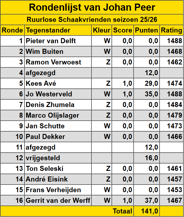 Johan Peer Hieronder een overzicht van de gespeelde wedstrijden van Johan Peer.