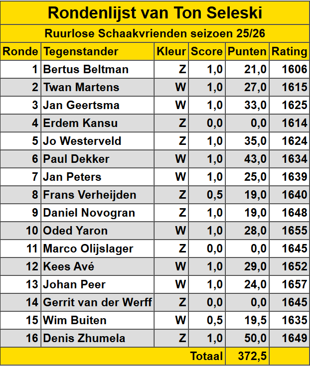 Ton Seleski Hieronder een overzicht van de gespeelde wedstrijden van Ton Seleski.