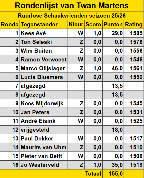 Twan Martens Hieronder een overzicht van de gespeelde wedstrijden van Twan Martens.