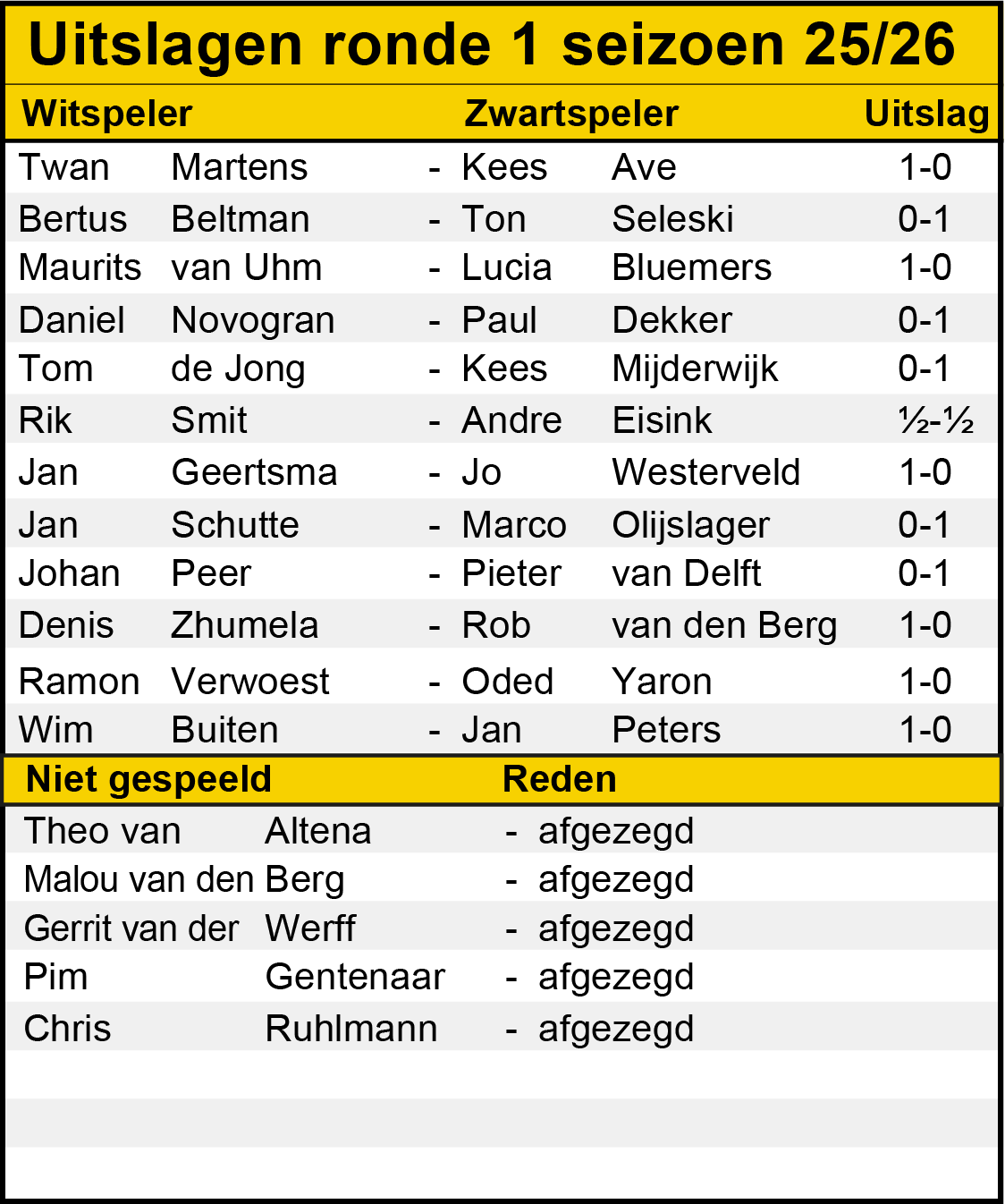 Hieronder de stand in de interne competitie van de Ruurlose schaakvrienden.