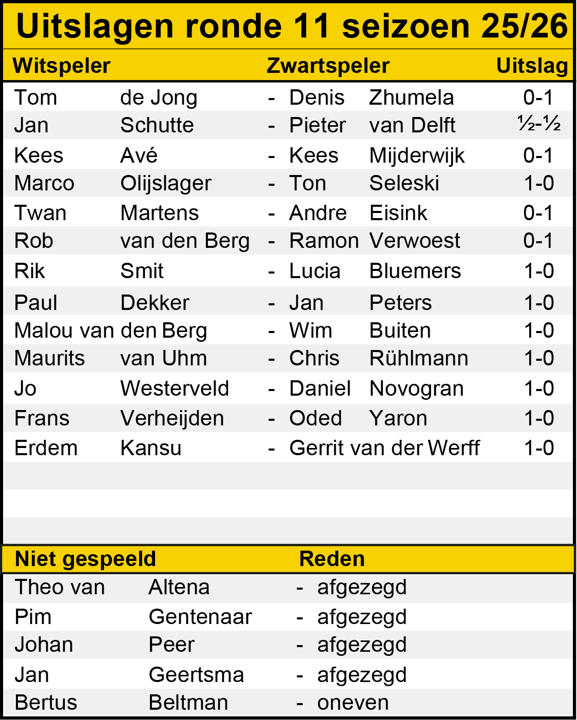 Ronde 11: uitslagen