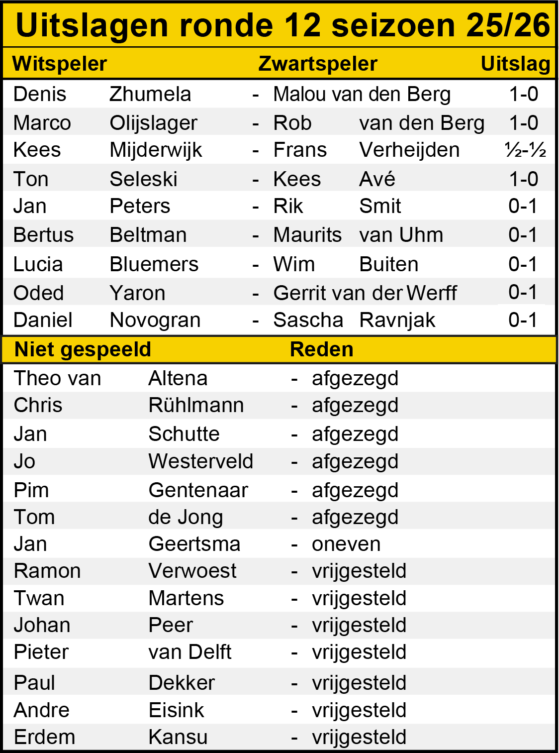 Ronde 12: uitslagen